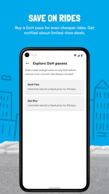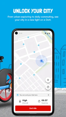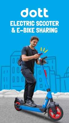 Dott ஸ்கூட்டர்கள் மற்றும் பைக்குகள் மூலம் உங்கள் அருகிலுள்ள பயண வசதிகளைக் கண்டறியுங்கள். நகரின் பரந்த சாலைகள் மற்றும் திறந்தவெளிப் பகுதிகளில் உங்களுக்குப் பிடித்தமான வழியில் பயணிக்கவும், புதிய இடங்களை ஆராயவும் முழுமையான சுதந்திரத்தை அனுபவியுங்கள்.