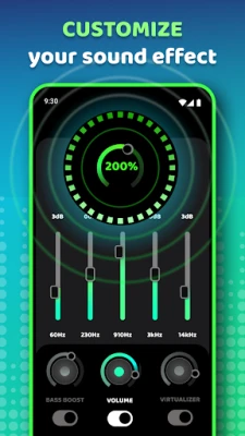 Music Equalizer, சமநிலைப்படுத்தி (Equalizer), பாஸ் பூஸ்ட் (Bass Boost) மற்றும் 3D விர்ச்சுவலைசர் (3D Virtualizer) போன்ற அம்சங்களை தனித்தனியாகக் கட்டுப்படுத்த உங்களை அனுமதிக்கிறது. இதன் பொருள், நீங்கள் பாஸ் அளவை உயர்த்த விரும்பினால், முழு EQ அமைப்பையும் மாற்ற வேண்டியதில்லை. ஐந்து-பேண்ட் சமநிலைப்படுத்தி, அத்துடன் Normal, Classic, Dance, Rock போன்ற 10 முன்னமைக்கப்பட்ட (presets) ஒலி அமைப்புகளுடன், உங்கள் இசை ரசனைக்கு ஏற்ப ஒலியைச் சரிசெய்யலாம். உங்கள் ஹெட்ஃபோன்களுடன் இணைக்கும்போது அல்லது புளூடூத் ஸ்பீக்கர் மூலம் இசையை ரசிக்கும்போது, Music Equalizer ஒரு சக்திவாய்ந்த ஒலி மேம்படுத்தியாக செயல்பட்டு, ஒவ்வொரு குறிப்பையும் தெளிவாகவும் ஆழமாகவும் வெளிப்படுத்தும்.