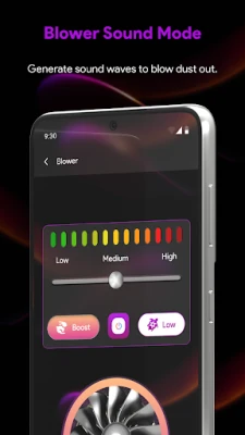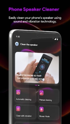 Blower Cleaner - Dust Removal, உங்கள் ஒலிபெருக்கியின் புத்துணர்ச்சிக்கான பலதரப்பட்ட அம்சங்களை வழங்குகிறது. சிக்கிக்கொண்ட நீர், குப்பைகள் மற்றும் தூசியை சிறப்பாக வடிவமைக்கப்பட்ட ஒலி அதிர்வெண்களைப் பயன்படுத்தி எளிதாக நீக்கலாம். ஒரே ஒரு தொடுதலில், உங்கள் தொலைபேசி ஒலிபெருக்கி சுத்தமாகி, புதியது போல செயல்படும். சுத்தம் செய்த பிறகு, உங்கள் ஒலிபெருக்கியின் செயல்பாட்டைச் சரிபார்க்க, உள்ளமைக்கப்பட்ட ஒலிச் சோதனை அம்சம் உள்ளது. தானியங்கி சுத்தம், கைமுறை சுத்தம், மற்றும் அதிர்வுடன் கூடிய சுத்தம் என மூன்று முக்கிய முறைகள் உள்ளன. ஸ்மார்ட் ஒலித் துடிப்புகளைப் பயன்படுத்தும் தானியங்கி முறை உடனடித் தீர்வை வழங்கும், அதே சமயம், ஆழமான சுத்திகரிப்புக்கு அதிர்வெண் அளவுகளைத் தனிப்பயனாக்க கைமுறை முறை உதவும். பிடிவாதமான தூசி மற்றும் நீருக்கு, ஒலி அலைகள் மற்றும் அதிர்வுகளை இணைக்கும் அதிர்வு சுத்தம் சிறந்தது.