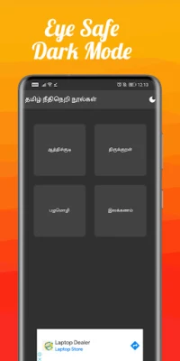 இலக்கணம் கடந்து, வாழ்வியல் நெறிகளைப் போதிக்கும் தமிழ் அறநூல்களின் புதையலையும் இந்தச் செயலி தன்னகத்தே கொண்டுள்ளது. அற நூல்களை இரு பெரும் பிரிவுகளின் கீழ் விரிவாக ஆராய்கிறோம்: முதலில், சங்க மருவிய காலத்து பதினெண்கீழ்க்கணக்கு நூல்கள். இவற்றில், மனிதகுலத்திற்குப் பொதுவான ஒழுக்க நெறிகளை உணர்த்தும் திருக்குறள் உட்பட பதினொரு தலைசிறந்த நூல்கள் அடங்கும். இரண்டாவதாக, பிற்காலத்தில் தோன்றிய அற இலக்கியங்கள். ஒளவையார், சிவப்பிரகாசர், குமர குருபரர் போன்ற அருட்பெரும் சான்றோர்களின் படைப்புகளும் அவற்றின் நீட்சியான அறச்சிந்தனைகளும் இங்கு விரிவாக எடுத்துரைக்கப்படுகின்றன. தமிழரின் வாழ்வியல் தத்துவங்களை உணர்ந்துகொள்ள இது ஓர் அரிய வாயில்.